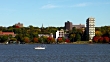 Poughkeepsie skyline along the Hudson River. Poughkeepsie is in the Hudson Valley midway between New York City and Albany, and is part of the New York metropolitan area