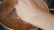 A detailed close-up of the process of preparing vegan minestrone soup in a home kitchen