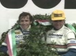 FLORENCE, ITALY - APRIL 14: (AUDIO OMITTED) Race winners Jacky Ickx and Jochen Mass stand on the top step of the podium with their winners’ wreaths alongside Marc Surer and Manfred Winkelhock in second position, and Stefan Bellof and Thierry Boutsen in third position after the 1000km Mugello at Mugello Circuit on April 14, 1985 in Florence, Italy. (Footage by Duke Video/Getty Images)