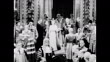 / Royal stage coach leads procession to parliament for first televised opening / Queen Elizabeth and Duke of Edinburgh stand in doorway as the doors open / crowd of people already inside waiting / proceeded by Field Marshal Viscount Montgomery, the Queen and the Duke enter the House of Lords / walk slowly into the House of Commons where the joint session is in full regalia / Queen sits on throne and delivers opening speech: 'Today for the first time this ceremony is being watched, not only by those that are present in this chamber but by many millions of my subjects. People in other lands will also be able to witness this renewal of the life of parliament'. First Televised Opening of UK Parliament on October 28, 1958 in London (Footage by Getty Images)