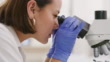 Scienza, microscopio e donna in laboratorio con campione per test del DNA, biotecnologie e analisi. Sanità, innovazione e scienziata in laboratorio per la ricerca, la sperimentazione e l'analisi medica - Video stock 4K