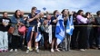 EXETER, ENGLAND - SEPTEMBER 6: Scotland fans show their support as the players arrive at the stadium prior to the Women's Rugby World Cup 2025 Pool B match between Canada and Scotland at Sandy Park on September 6, 2025 in Exeter, England. (Footage by Dan Mullan/Getty Images)