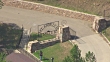 MS AERIAL TS TU ZO Shot of Mount Moriah Cemetery sign and pull out to cemetery with town be / Deadwood, South Dakota, United States - Video stock HD