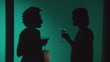 Silhouettes of two woman drinking martini's and laughing.