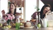Piccolo gruppo di fidanzate che si godono il brunch insieme - Video stock 4K