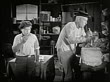 Stooped over chinese man in traditional chinese suit and hat and chubby boy with cap stand in cluttered dilapidated house boat cabin / boy holds old fashioned starched collar in hands and looks puzzled at chinese writing characters, he speaks / CU chinese man with wide eyes / he speaks and turns back to writing / boy pulls cookie out of pocket and bites it smiling and offers it to chinese man who refuses / boy leaves. on January 01, 1922 in California (Footage by Getty Images)