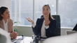 Team, avvocato e donna che parlano a riunioni, conversazioni o leadership in azienda d'ufficio. Collaborazione, gruppo e avvocato a tavola in discussione, pianificazione strategia e brainstorming business legale - Video stock 4K