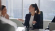 Team, lawyer and woman speaking at meeting, conversation or leadership in office company. Collaboration, group and attorney at table in discussion, planning strategy and brainstorming legal business