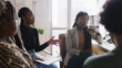 Teamwork, leadership and power by black business women discussing and planning during a meeting in a modern office. African American females explaining idea, goal or mission strategy for a startup