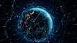 fly-by of a technologic earth surrounded by a network of graphics effects