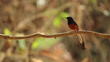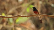 Thrush magpie,Muscicapidae,,Close-up of songbird perching on wood,in the rain forest of Thailand