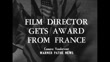 Title "Film director gets award from France" superimposed over display of small flags of different countries / luncheon guests sitting at table / actor Henry Fonda sitting at table applauding / French Consul General Raoul Bertrand standing and speaking / three guests sitting at table listening / two guests sitting at table listening / actor Dana Andrews on right sitting at table with another listening / Bertrand handing "Victoire" award to director Mervyn LeRoy and shaking his hand / actor Jack Lemmon on left and another guest sitting at table applauding / two guests sitting at table applauding / two shots of guests applauding / LeRoy standing with award posing for photo opportunity / Note: exact day not known