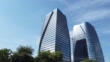 Video taken by car passing in front of two modern buildings located at Vila Olimpia in Sao Paulo city.