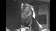 Two shots of actor and singer Bill Shirley standing on stage singing / actor and singer Larry Roberts sitting with soldiers and two Korean children listening / close shot of Shirley singing / two shots of actor and comedian Roscoe Ates standing on stage playing violin / two shots of unidentified comedian on stage performing / three shots of actors Rory Calhoun and Lita Baron together on stage singing / shot from behind soldiers in audience / four shots of actor Shirley Hall mingling with soldiers / Note: exact day not known