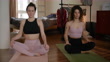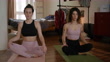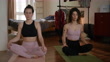 Two women breathing at home with eyes closed - Video stock 4K