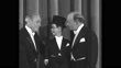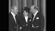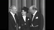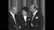 Edgar Bergen and Charlie McCarthy on stage in Los Angeles with Jack Benny on his 10th anniversary of being on the air