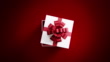 White gift box is opening on red background. 4 K resolution. Alpha matte is included at the end of clip.