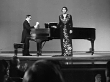 1951 Wide shot Contralto singer Marian Anderson walking onstage and bowing next to pianist during performance/ USA