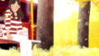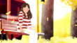 Woman sitting on a bus stop at ginkgo tree road - Video stock HD