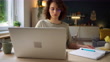 Giovane donna caucasica che lavora sul computer portatile nel suo ufficio a casa - Video stock 4K