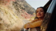Young woman having fun on a road trip in the mountains - Video stock 4K