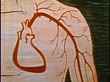 ANIMATION zoom in blood flowing through veins to beating heart - Video stock