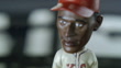 ZOOM IN ON BOBBLE HEAD STATUE OF SATCHEL PAIGE, HALL OF FAME BASEBALL PLAYER, WEARING KANSAS CITY ATHLETICS BASEBALL UNIFORM AND HOLDING PITCHER'S MIT OR BASEBALL GLOVE. - Video stock HD